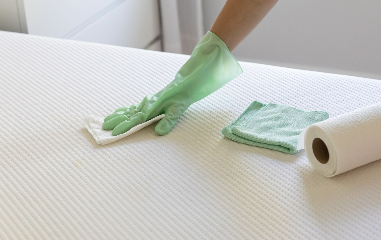 ابتدا با دستکش لاستیکی، ملحفههای روی تشک را جدا کرده و در مرحله بعد به آنها رسیدگی کنید.