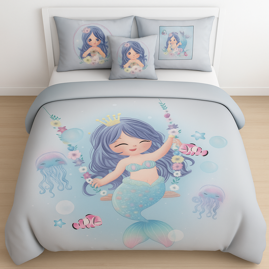 روتختی تکنفره چاپ دیجیتال 4تکه مدل پری دریایی
