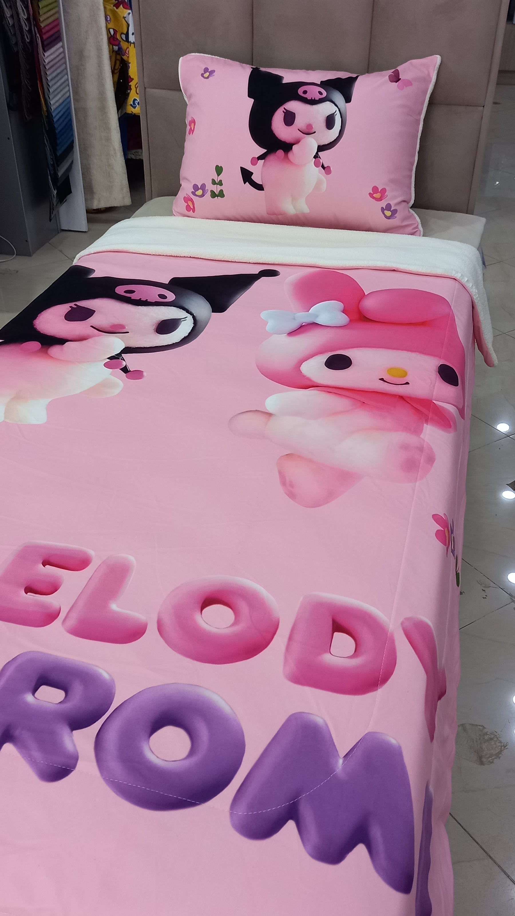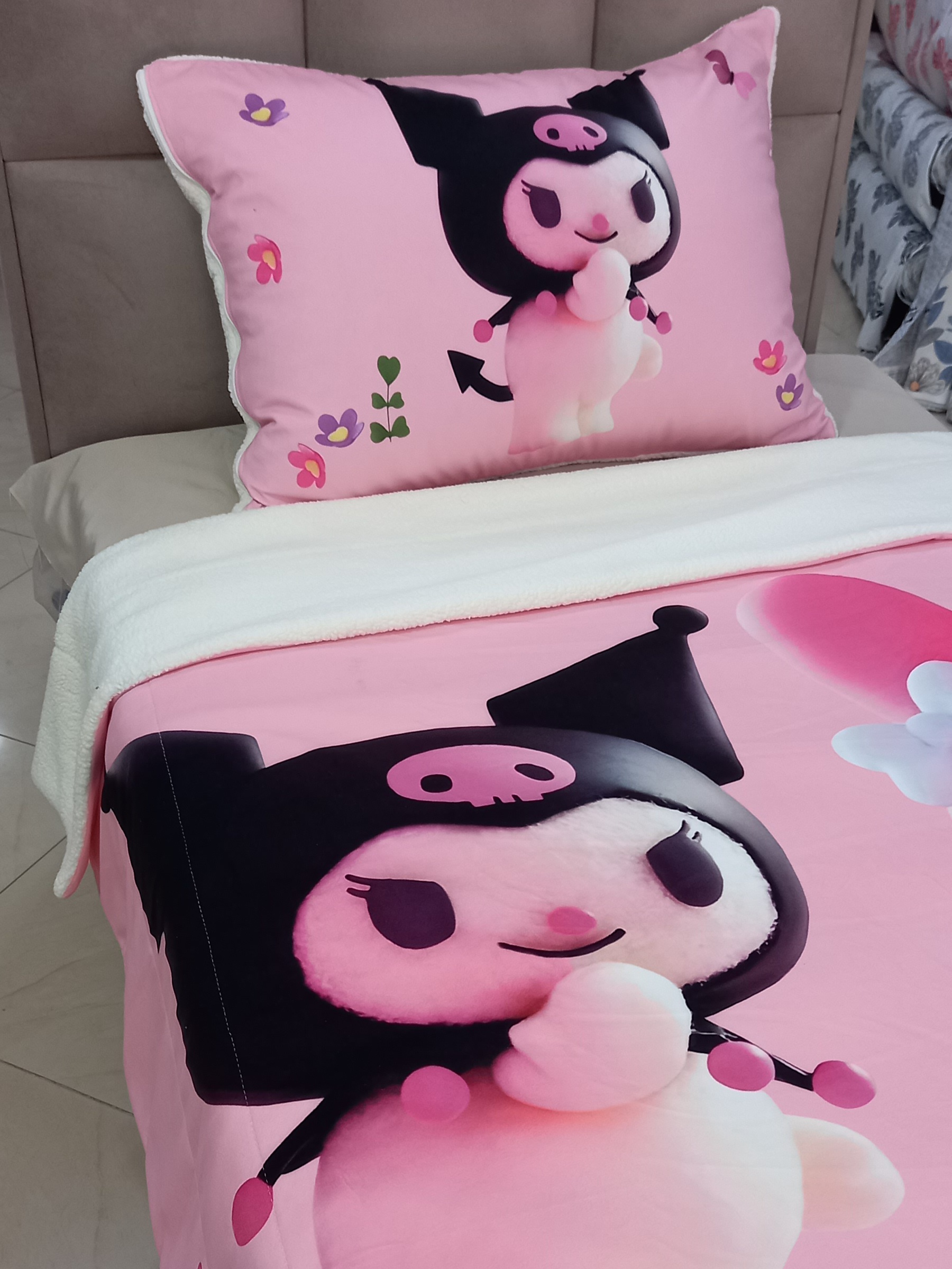 پتو گوسفندی (تدی) یک نفره دولایه طرح کرومی با روبالش