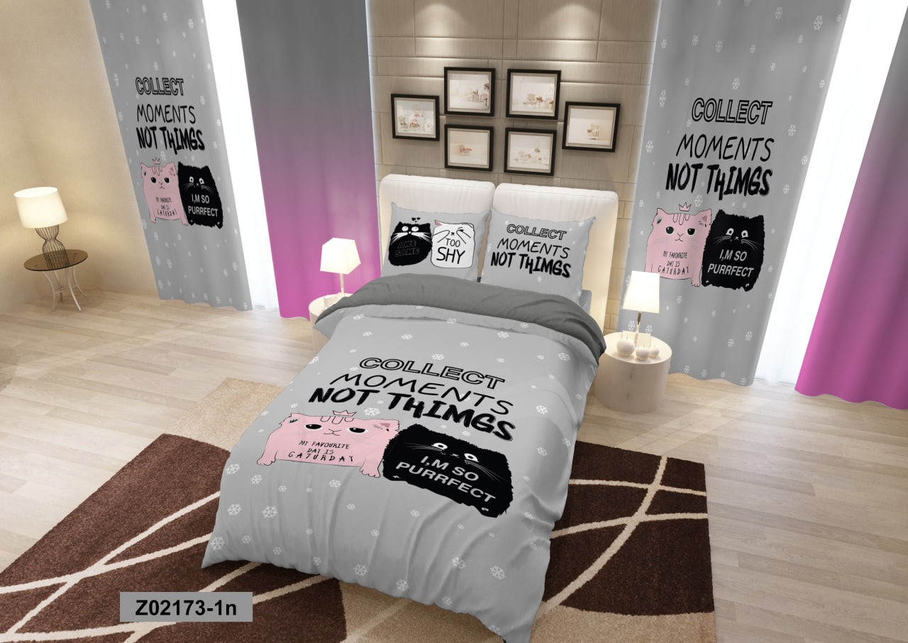روتختی تکنفره چاپ دیجیتال 4تکه طرح گربه طوسی
