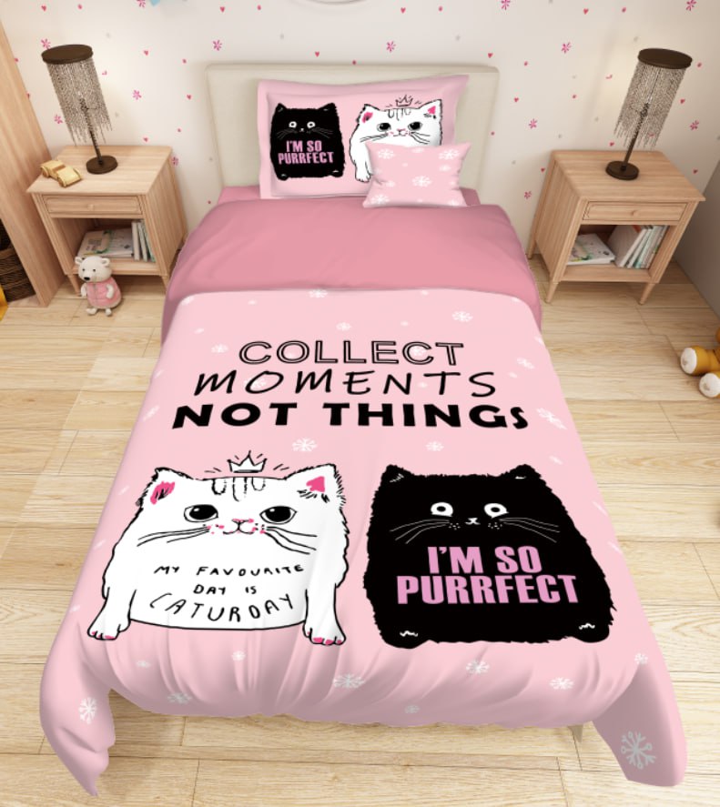 روتختی تکنفره چاپ دیجیتال 4تکه طرح گربه صورتی